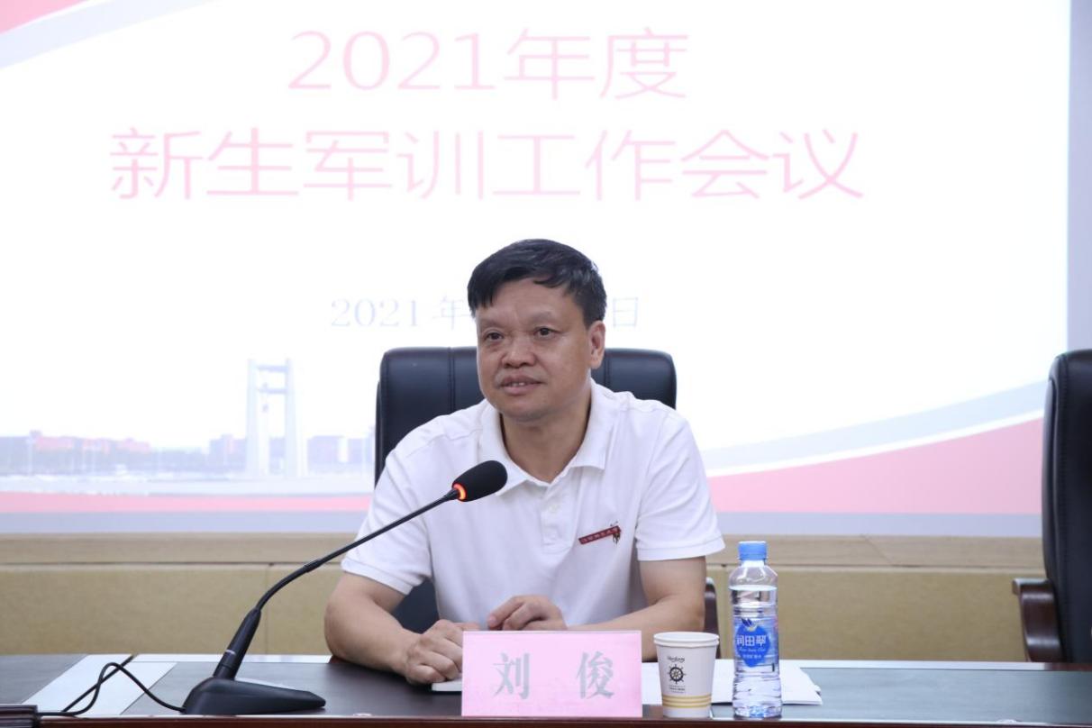 刘俊作讲话。他说,军训是新生入学的“第一课”,在疫情防控常态化下组织军训意义重大,要做好做细各项工作,确保高效精彩、平安祥和。他对军训工作提出了要求,要把学习贯彻习近平总书记“七一”重要讲话精神同军训工作有机结合,提高学生的国防意识、增强国防观念;要从贯彻新发展理念、构建新发展格局、高等教育进入新发展阶段背景下的人才培养模式来推进军训工作,注重将理念转变为实践,力争实践取得实效;要贯彻“以生为本”的理念,解决军训期间学生“急难愁盼”的具体问题,确保军训工作顺利进行;要坚持常态化疫情防控总要求和校园平安稳定总原则,周密部署稳步推进,在训练中锤炼学生刻苦磨砺、吃苦耐劳,团结奉献、纪律严明的良好作风;要坚持系统集成、统筹协调的观念和方法,各相关部门要为军训工作提供坚实保障,善于预判各种未知的风险,未雨绸缪做好应急预案,确保军训工作顺利开展。