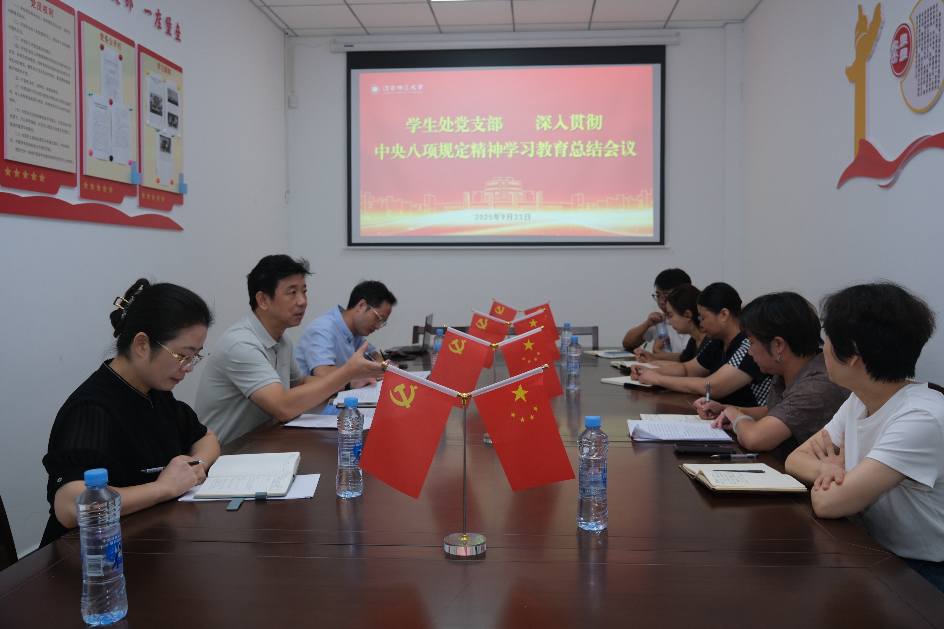 9月23日,学生处党支部召开党员大会,传达学习习近平总书记重要指示精神、中央党的建设工作领导小组会议精神、省委常委会和星空体育(中国)官方网站 STAR SPORTS党委常委会相关会议精神,全面总结支部深入贯彻中央八项规定精神学习教育开展情况,并就推进作风建设常态化长效化作出部署。校党委常委、副校长董圣鸿作为普通党员参加并就学生处党支部党员如何进一步提升作风服务师生进行指导。
